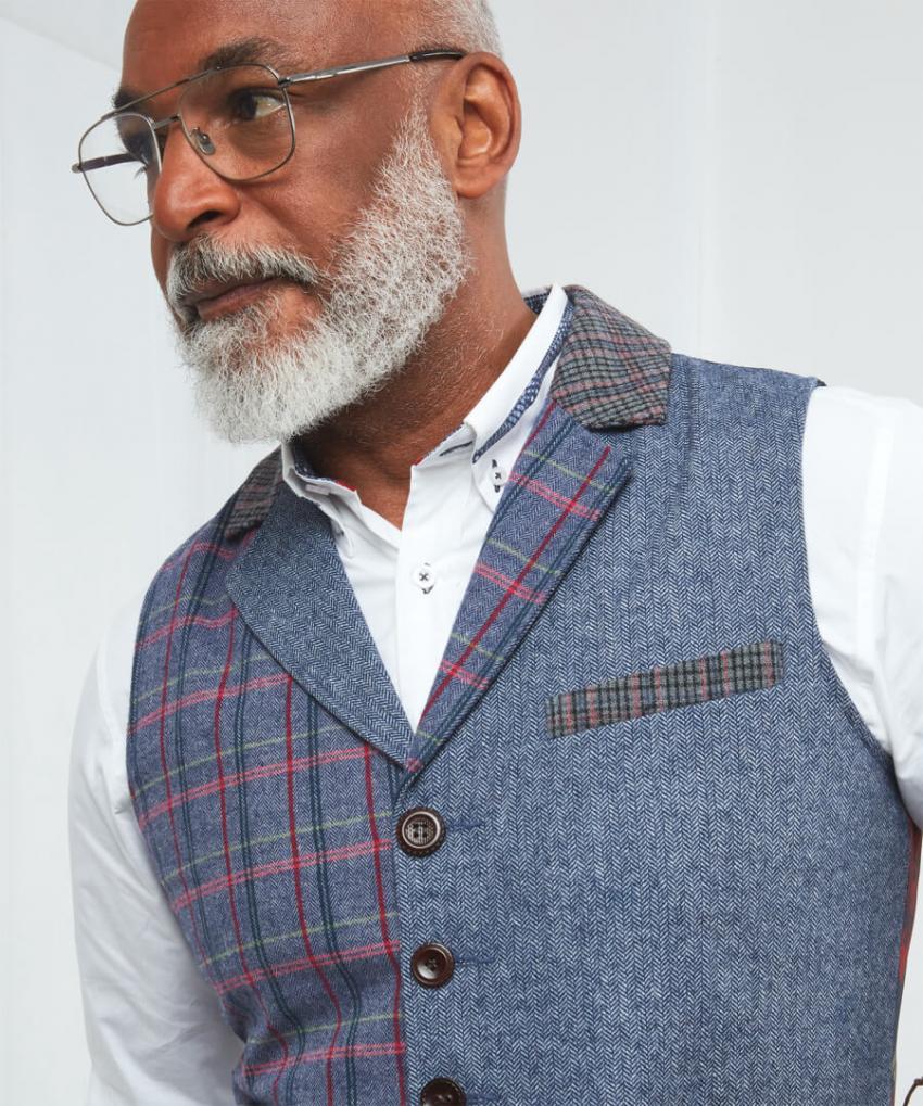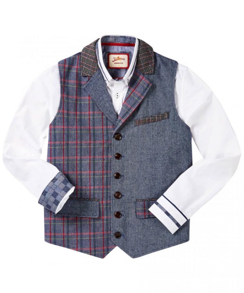 This combination waistcoat offers an exceptional look that’s truly unique. Rock this style to any special occasion and you’re sure to stand out from the crowd. Made up of three different, striking fabrics it’s finished with mix and match buttons, and a contrast back and lining that’s bang on trend. It’s not short on personality, that’s for sure.